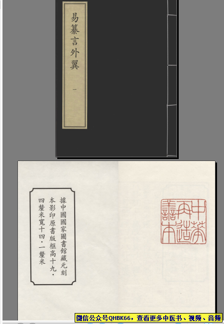易纂言外翼 元刻本本站专注中医资源,涵盖视频,音频,电子文档等等等……关注微信公众号【QHBK66】,回复对应编码,获网盘下载地址。 更多中医视频,音频,电子书等《中医超级资源库》目录,查看网址:https://qr09.cn/FDjI4p