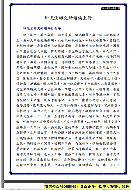 印光法师文钞续编上册本站专注中医资源,涵盖视频,音频,电子文档等等等……关注微信公众号【QHBK66】,回复对应编码,获网盘下载地址。 更多中医视频,音频,电子书等《中医超级资源库》目录,查看网址:https://qr09.cn/FDjI4p
