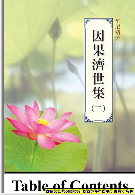 因果濟世集-第二集本站专注中医资源,涵盖视频,音频,电子文档等等等……关注微信公众号【QHBK66】,回复对应编码,获网盘下载地址。 更多中医视频,音频,电子书等《中医超级资源库》目录,查看网址:https://qr09.cn/FDjI4p