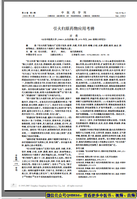 引火归原药物应用考辨本站专注中医资源,涵盖视频,音频,电子文档等等等……关注微信公众号【QHBK66】,回复对应编码,获网盘下载地址。 更多中医视频,音频,电子书等《中医超级资源库》目录,查看网址:https://qr09.cn/FDjI4p