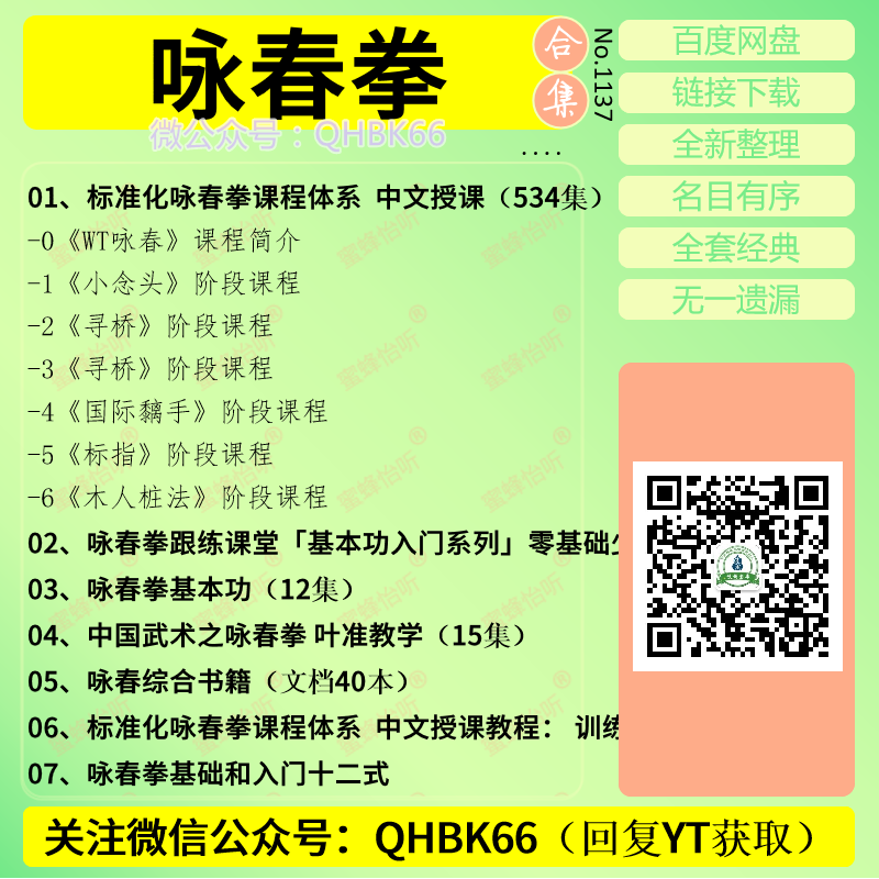 咏春拳中医视频教程大全电子资料零基础入门到精通