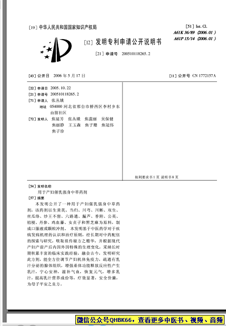 用于产妇催乳强身中草药剂_200510118265.2