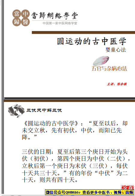 圆运动之婴童心法+第七讲本站专注中医资源,涵盖视频,音频,电子文档等等等……关注微信公众号【QHBK66】,回复对应编码,获网盘下载地址。 更多中医视频,音频,电子书等《中医超级资源库》目录,查看网址:https://qr09.cn/FDjI4p