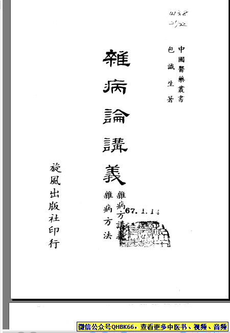 杂病论讲义本站专注中医资源,涵盖视频,音频,电子文档等等等……关注微信公众号【QHBK66】,回复对应编码,获网盘下载地址。 更多中医视频,音频,电子书等《中医超级资源库》目录,查看网址:https://qr09.cn/FDjI4p