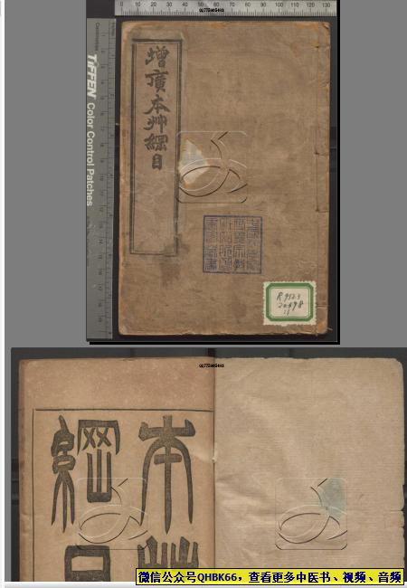 增广本草纲目01本站专注中医资源,涵盖视频,音频,电子文档等等等……关注微信公众号【QHBK66】,回复对应编码,获网盘下载地址。 更多中医视频,音频,电子书等《中医超级资源库》目录,查看网址:https://qr09.cn/FDjI4p