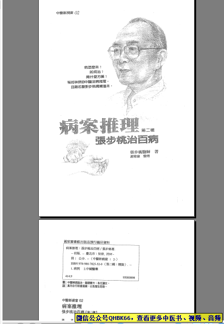 张步桃病案推理第二部 本站专注中医资源,涵盖视频,音频,电子文档等等等……关注微信公众号【QHBK66】,回复对应编码,获网盘下载地址。 更多中医视频,音频,电子书等《中医超级资源库》目录,查看网址:https://qr09.cn/FDjI4p