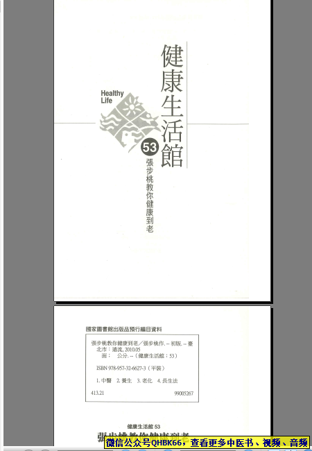 张步桃教你健康到老本站专注中医资源,涵盖视频,音频,电子文档等等等……关注微信公众号【QHBK66】,回复对应编码,获网盘下载地址。 更多中医视频,音频,电子书等《中医超级资源库》目录,查看网址:https://qr09.cn/FDjI4p
