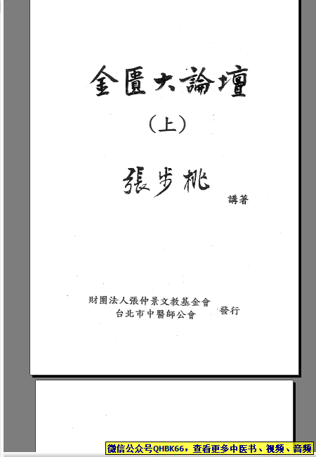 张步桃金匮大论坛上本站专注中医资源,涵盖视频,音频,电子文档等等等……关注微信公众号【QHBK66】,回复对应编码,获网盘下载地址。 更多中医视频,音频,电子书等《中医超级资源库》目录,查看网址:https://qr09.cn/FDjI4p