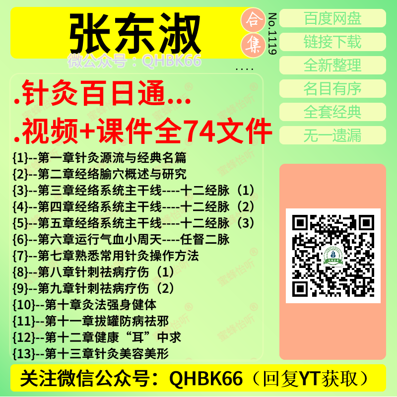 张东淑针灸百日通中医视频教程大全电子资料零基础入门到精通