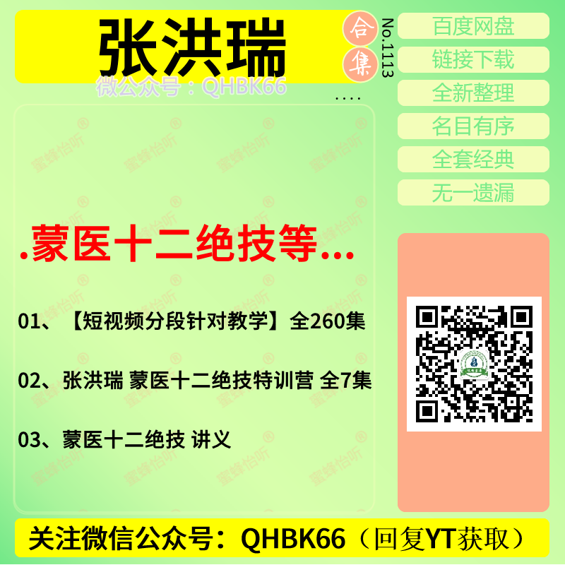 张洪瑞蒙医十二绝技中医视频教程大全电子资料零基础入门到精通
