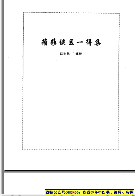 本站专注中医资源,涵盖视频,音频,电子文档等等等……关注微信公众号【QHBK66】,回复对应编码,获网盘下载地址。