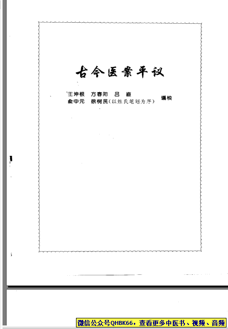 本站专注中医资源,涵盖视频,音频,电子文档等等等……关注微信公众号【QHBK66】,回复对应编码,获网盘下载地址。