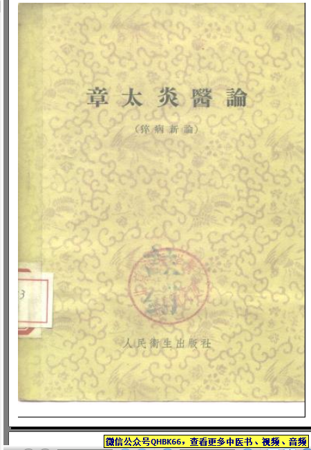 章太炎医论本站专注中医资源,涵盖视频,音频,电子文档等等等……关注微信公众号【QHBK66】,回复对应编码,获网盘下载地址。 更多中医视频,音频,电子书等《中医超级资源库》目录,查看网址:https://qr09.cn/FDjI4p