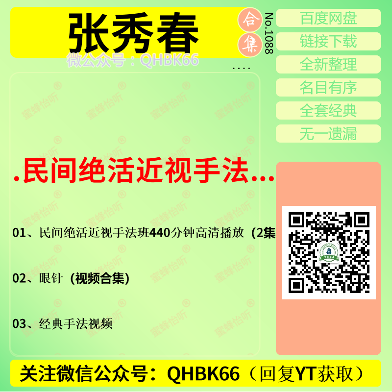 张秀春民间绝活近视手法中医视频教程大全电子资料零基础入门到精通