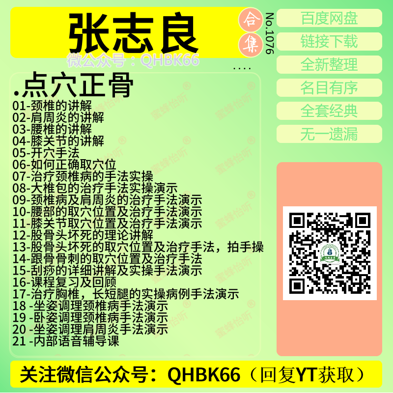 张志良点穴正骨中医视频教程大全电子资料零基础入门到精通