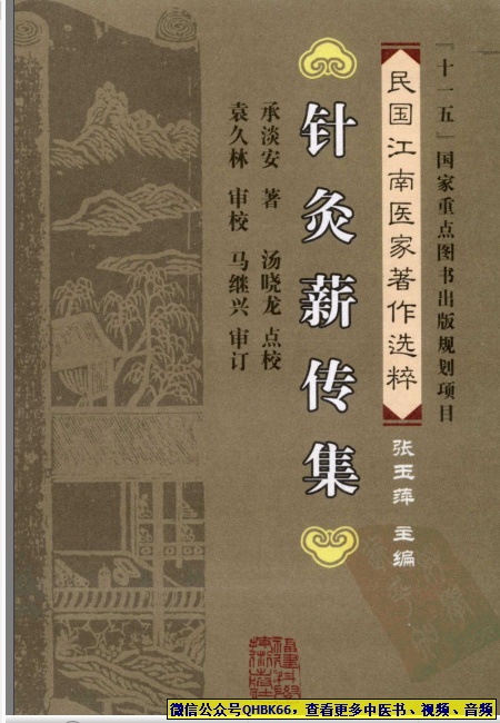 针灸薪传集(承淡安 著)本站专注中医资源,涵盖视频,音频,电子文档等等等……关注微信公众号【QHBK66】,回复对应编码,获网盘下载地址。 更多中医视频,音频,电子书等《中医超级资源库》目录,查看网址:https://qr09.cn/FDjI4p