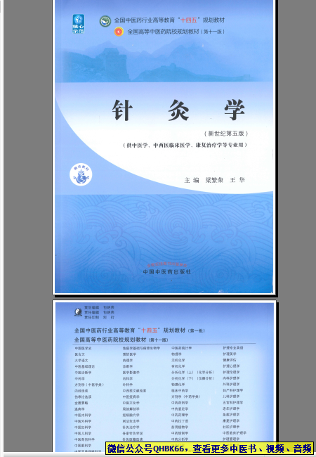针灸学本站专注中医资源,涵盖视频,音频,电子文档等等等……关注微信公众号【QHBK66】,回复对应编码,获网盘下载地址。 更多中医视频,音频,电子书等《中医超级资源库》目录,查看网址:https://qr09.cn/FDjI4p
