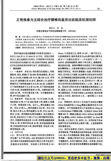正骨推拿为主综合治疗腰椎间盘突出症临床机理初探