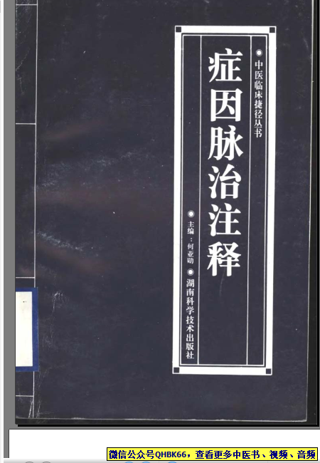 症因脉治注释本站专注中医资源,涵盖视频,音频,电子文档等等等……关注微信公众号【QHBK66】,回复对应编码,获网盘下载地址。 更多中医视频,音频,电子书等《中医超级资源库》目录,查看网址:https://qr09.cn/FDjI4p