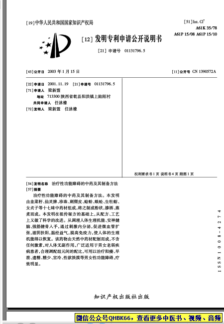 治疗性功能障碍的中药及其制备方法_01131796.5