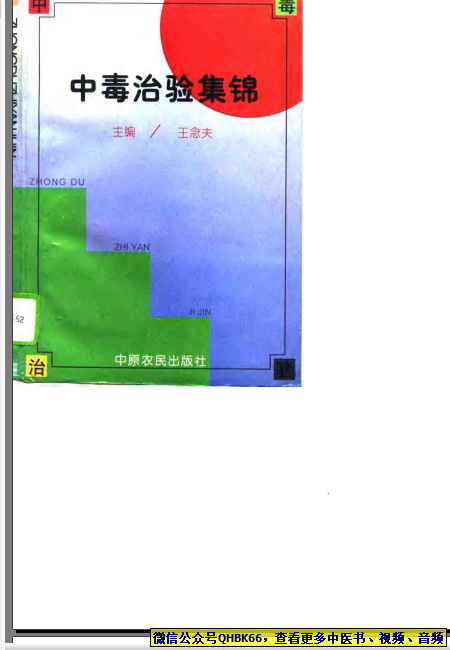 中毒治验集锦(扫描版)本站专注中医资源,涵盖视频,音频,电子文档等等等……关注微信公众号【QHBK66】,回复对应编码,获网盘下载地址。 更多中医视频,音频,电子书等《中医超级资源库》目录,查看网址:https://qr09.cn/FDjI4p
