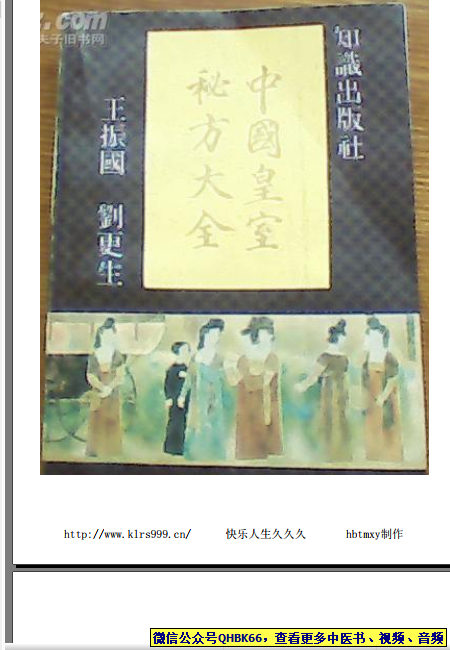 中国皇室秘方大全·女性篇本站专注中医资源,涵盖视频,音频,电子文档等等等……关注微信公众号【QHBK66】,回复对应编码,获网盘下载地址。 更多中医视频,音频,电子书等《中医超级资源库》目录,查看网址:https://qr09.cn/FDjI4p