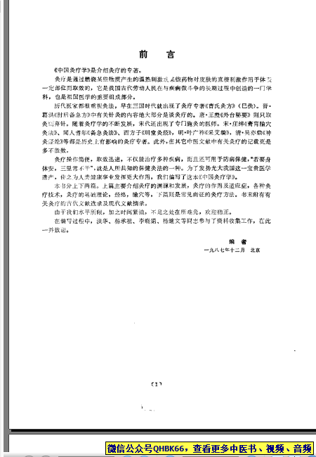 中国灸疗学(章逢润)本站专注中医资源,涵盖视频,音频,电子文档等等等……关注微信公众号【QHBK66】,回复对应编码,获网盘下载地址。 更多中医视频,音频,电子书等《中医超级资源库》目录,查看网址:https://qr09.cn/FDjI4p