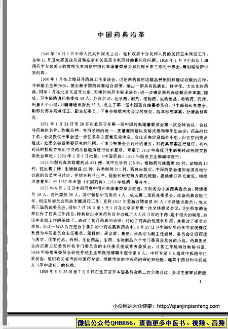 中国药典(1995版)本站专注中医资源,涵盖视频,音频,电子文档等等等……关注微信公众号【QHBK66】,回复对应编码,获网盘下载地址。 更多中医视频,音频,电子书等《中医超级资源库》目录,查看网址:https://qr09.cn/FDjI4p