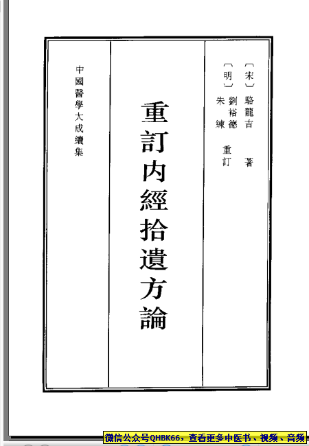 中国医学大成续集--13重订内经拾遗方论-[宋]骆龙吉