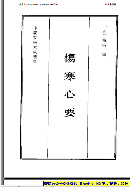中国医学大成续集--17伤寒心要-[金]镏洪