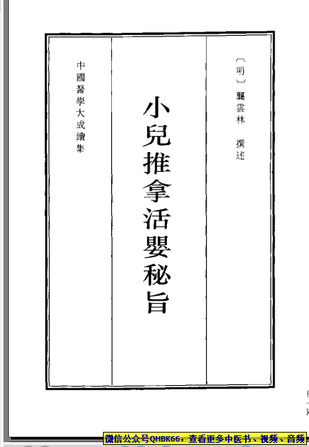 中国医学大成续集--40小儿推拿活婴秘旨-[明]龚云林