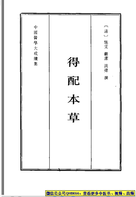 中国医学大成续集--8得配本草-[清]施雯 严洁 洪炜