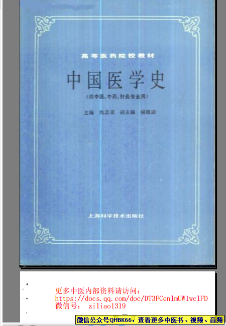 中国医学史(第五版)本站专注中医资源,涵盖视频,音频,电子文档等等等……关注微信公众号【QHBK66】,回复对应编码,获网盘下载地址。 更多中医视频,音频,电子书等《中医超级资源库》目录,查看网址:https://qr09.cn/FDjI4p