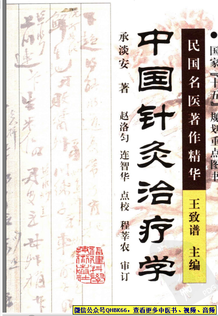中国针灸治疗学(高清版)本站专注中医资源,涵盖视频,音频,电子文档等等等……关注微信公众号【QHBK66】,回复对应编码,获网盘下载地址。 更多中医视频,音频,电子书等《中医超级资源库》目录,查看网址:https://qr09.cn/FDjI4p