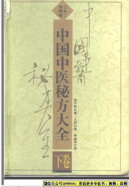 中国中医秘方大全·下本站专注中医资源,涵盖视频,音频,电子文档等等等……关注微信公众号【QHBK66】,回复对应编码,获网盘下载地址。 更多中医视频,音频,电子书等《中医超级资源库》目录,查看网址:https://qr09.cn/FDjI4p