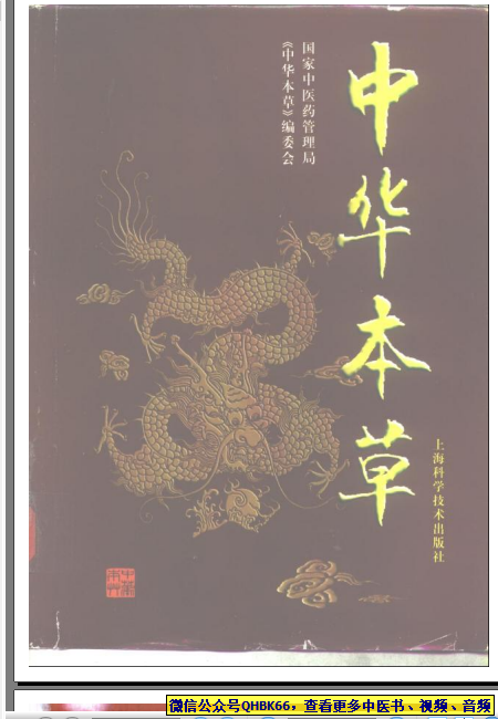 中华本草 1本站专注中医资源,涵盖视频,音频,电子文档等等等……关注微信公众号【QHBK66】,回复对应编码,获网盘下载地址。 更多中医视频,音频,电子书等《中医超级资源库》目录,查看网址:https://qr09.cn/FDjI4p
