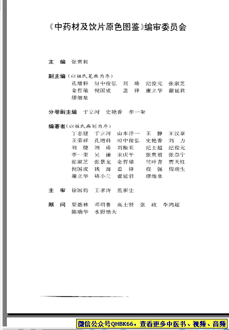 中药材及饮片原色图鉴本站专注中医资源,涵盖视频,音频,电子文档等等等……关注微信公众号【QHBK66】,回复对应编码,获网盘下载地址。 更多中医视频,音频,电子书等《中医超级资源库》目录,查看网址:https://qr09.cn/FDjI4p