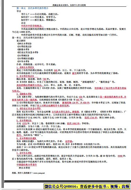 中药讲义试看本站专注中医资源,涵盖视频,音频,电子文档等等等……关注微信公众号【QHBK66】,回复对应编码,获网盘下载地址。 更多中医视频,音频,电子书等《中医超级资源库》目录,查看网址:https://qr09.cn/FDjI4p