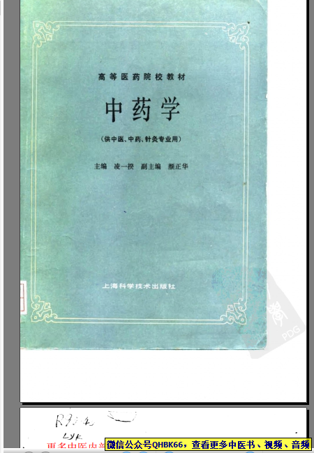 中药学(第五版)本站专注中医资源,涵盖视频,音频,电子文档等等等……关注微信公众号【QHBK66】,回复对应编码,获网盘下载地址。 更多中医视频,音频,电子书等《中医超级资源库》目录,查看网址:https://qr09.cn/FDjI4p