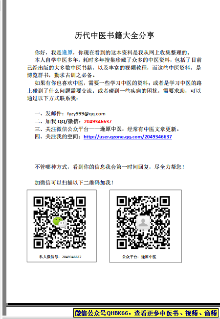 本站专注中医资源,涵盖视频,音频,电子文档等等等……关注微信公众号【QHBK66】,回复对应编码,获网盘下载地址。