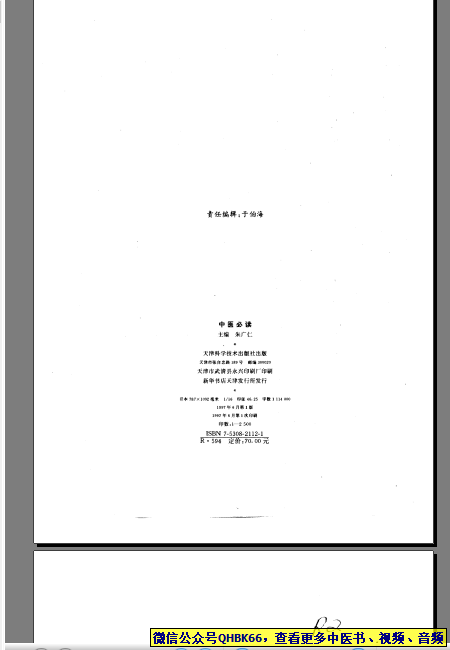 中医必读本站专注中医资源,涵盖视频,音频,电子文档等等等……关注微信公众号【QHBK66】,回复对应编码,获网盘下载地址。 更多中医视频,音频,电子书等《中医超级资源库》目录,查看网址:https://qr09.cn/FDjI4p