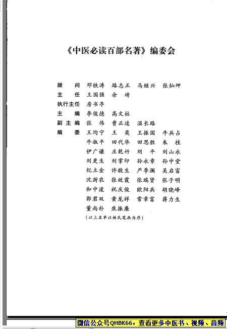 中医必读百部名着 医经卷本站专注中医资源,涵盖视频,音频,电子文档等等等……关注微信公众号【QHBK66】,回复对应编码,获网盘下载地址。 更多中医视频,音频,电子书等《中医超级资源库》目录,查看网址:https://qr09.cn/FDjI4p