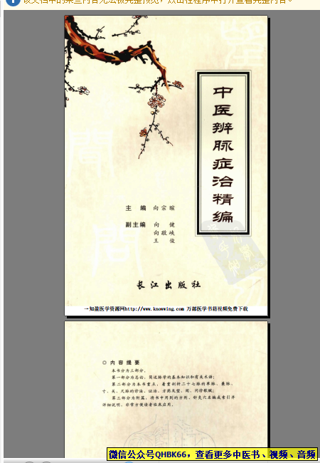 中医辨脉症治精编本站专注中医资源,涵盖视频,音频,电子文档等等等……关注微信公众号【QHBK66】,回复对应编码,获网盘下载地址。 更多中医视频,音频,电子书等《中医超级资源库》目录,查看网址:https://qr09.cn/FDjI4p