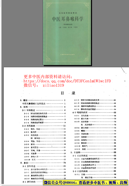 中医耳鼻喉科学(第五版)本站专注中医资源,涵盖视频,音频,电子文档等等等……关注微信公众号【QHBK66】,回复对应编码,获网盘下载地址。 更多中医视频,音频,电子书等《中医超级资源库》目录,查看网址:https://qr09.cn/FDjI4p