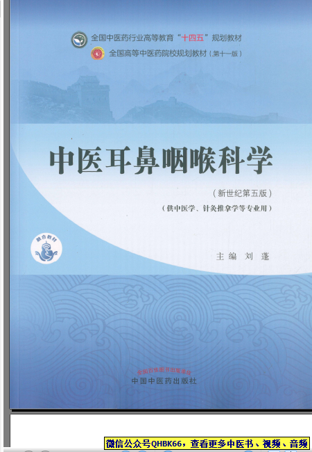 中医耳鼻咽喉科学 本站专注中医资源,涵盖视频,音频,电子文档等等等……关注微信公众号【QHBK66】,回复对应编码,获网盘下载地址。 更多中医视频,音频,电子书等《中医超级资源库》目录,查看网址:https://qr09.cn/FDjI4p