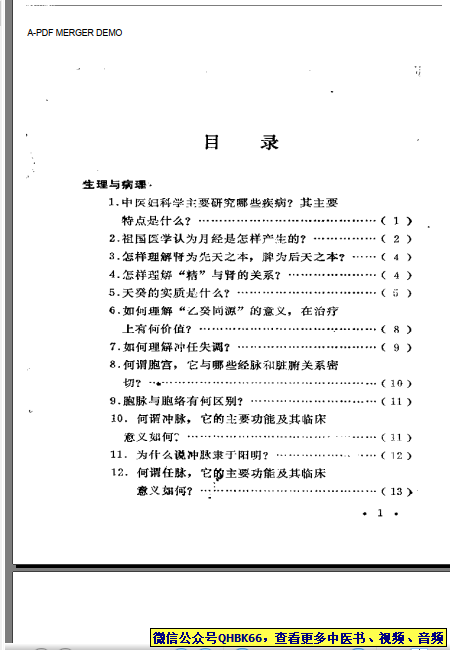 中医妇科百问本站专注中医资源,涵盖视频,音频,电子文档等等等……关注微信公众号【QHBK66】,回复对应编码,获网盘下载地址。 更多中医视频,音频,电子书等《中医超级资源库》目录,查看网址:https://qr09.cn/FDjI4p