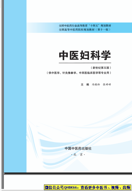 中医妇科学本站专注中医资源,涵盖视频,音频,电子文档等等等……关注微信公众号【QHBK66】,回复对应编码,获网盘下载地址。 更多中医视频,音频,电子书等《中医超级资源库》目录,查看网址:https://qr09.cn/FDjI4p