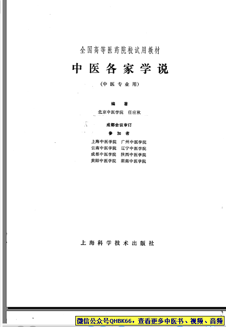 中医各家学说(高等医药院校试用教材 上海科学技术出版社1980)---[注:进中医万人群交流 +威信:QHBK2008 ]