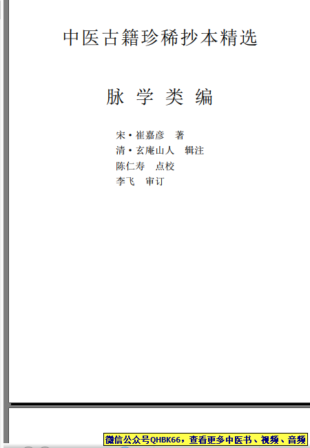 本站专注中医资源,涵盖视频,音频,电子文档等等等……关注微信公众号【QHBK66】,回复对应编码,获网盘下载地址。