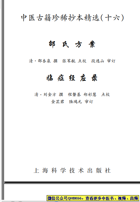 本站专注中医资源,涵盖视频,音频,电子文档等等等……关注微信公众号【QHBK66】,回复对应编码,获网盘下载地址。